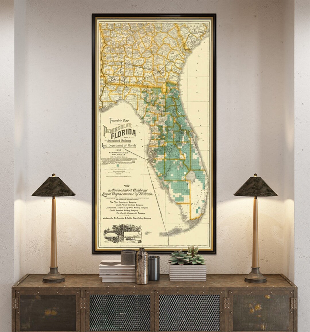 Florida Map Vintage Map Of Florida Large Print Up To Etsy Uk